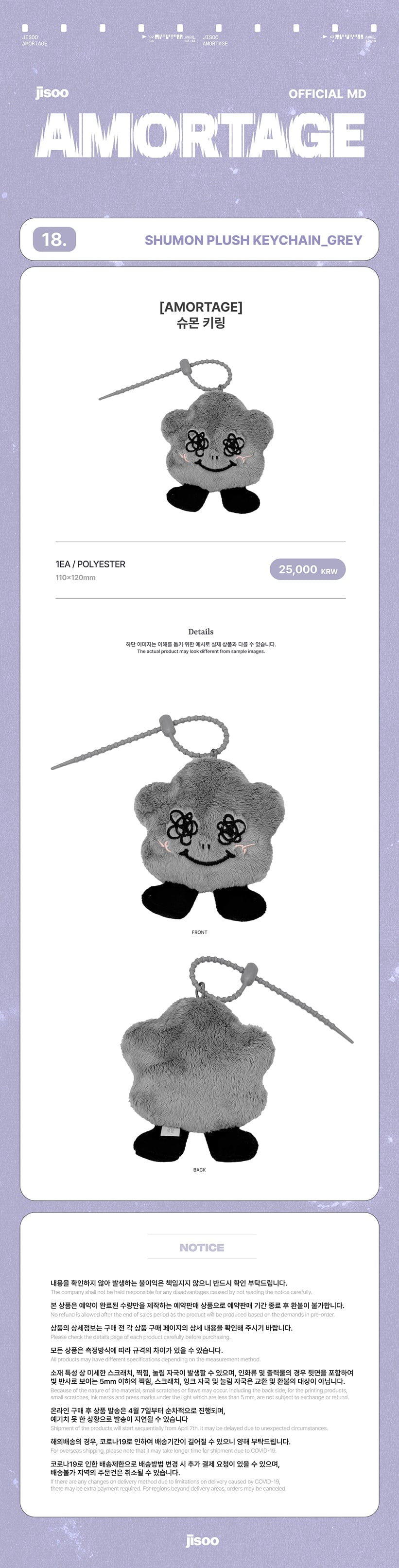 SHUMON PLUSH KEYCHAIN GREY-FinaKpop